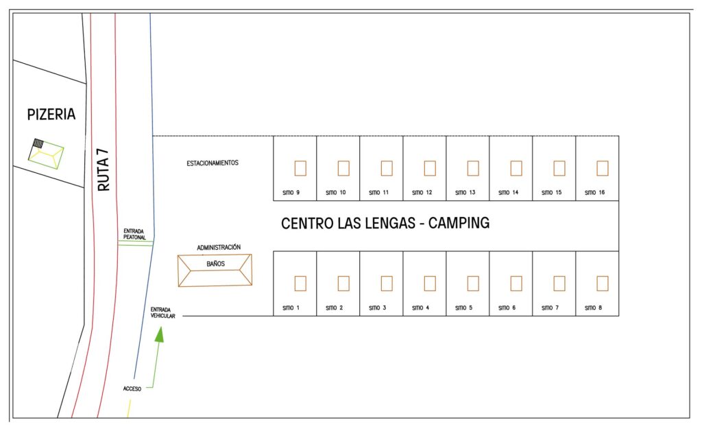 Camping con sitios de 200 metros